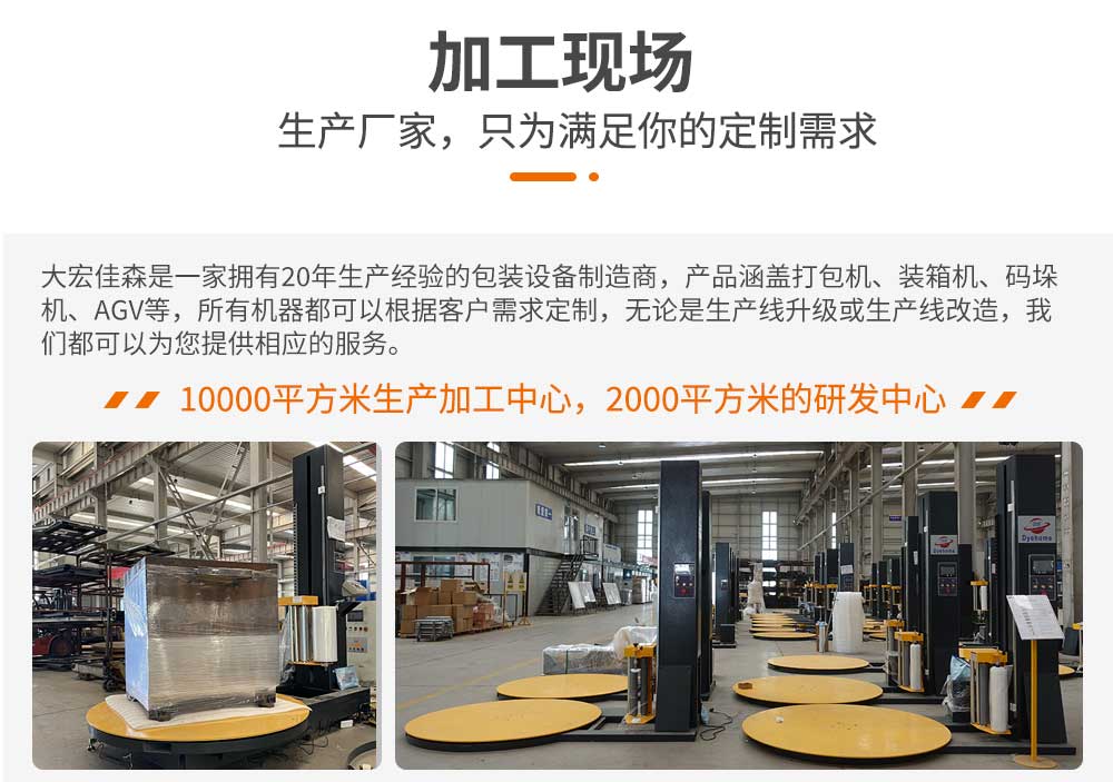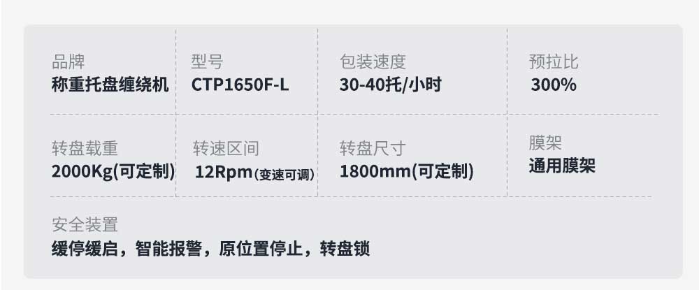 大宏佳森稱重托盤(pán)纏繞包裝機(jī)CTP1650F-L可自動(dòng)稱出來(lái)貨物重量,適用于散貨的集裝箱運(yùn)輸和散貨托盤(pán)的包裝,