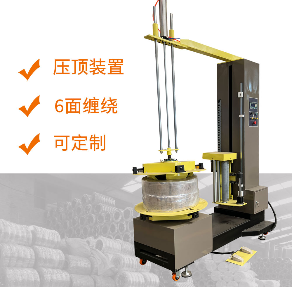壓頂裝置保證貨物在包裝過程中平穩(wěn),包裝高度可根據(jù)客戶要求定做.并且可通過人工翻轉(zhuǎn)90度實(shí)現(xiàn)六面包裝。