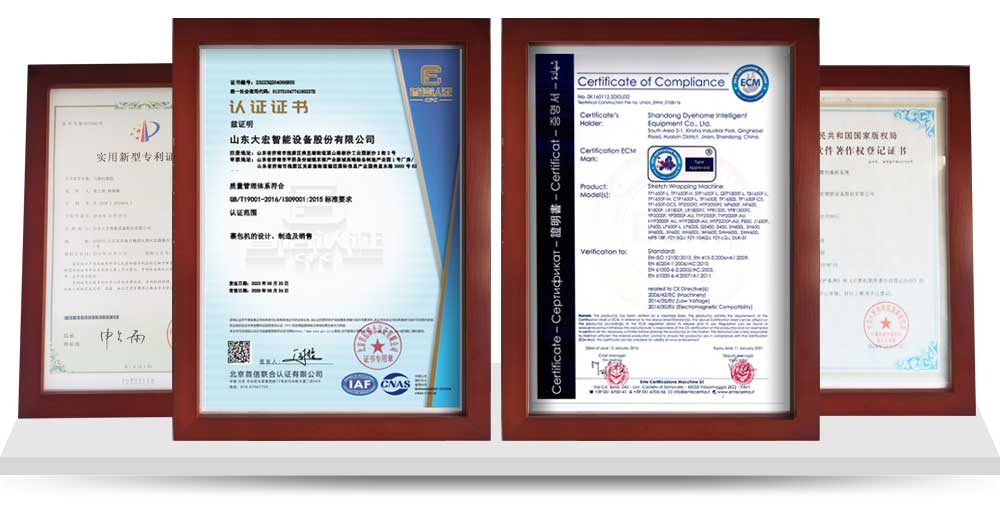 大宏佳森壓頂型托盤纏繞機TP1650F-CS采用電動加壓裝置,全程壓頂,針對于單個貨物較輕及碼垛較高的托盤纏繞,