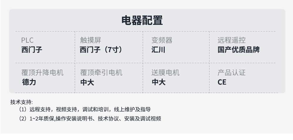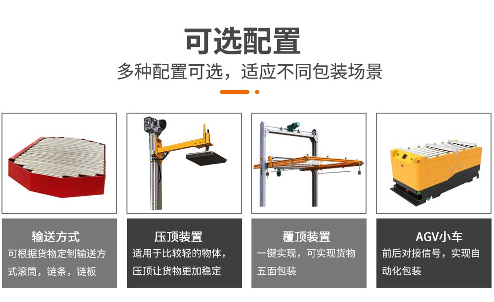 | 覆頂 | 可選配,頂部自動覆膜,實現5面自動化包裝 |