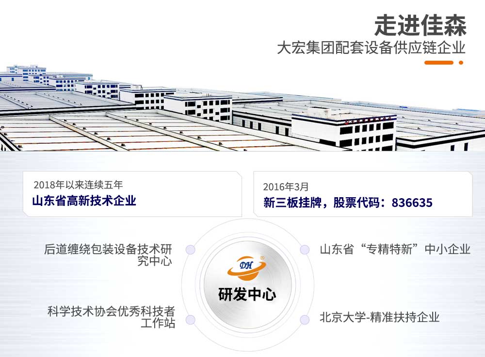 大宏佳森在線回轉纏繞機HTP2000FZ,主要適用于生產量大、物流效率較高的現代化作業,滿足較輕或較重貨物的包裝要求。