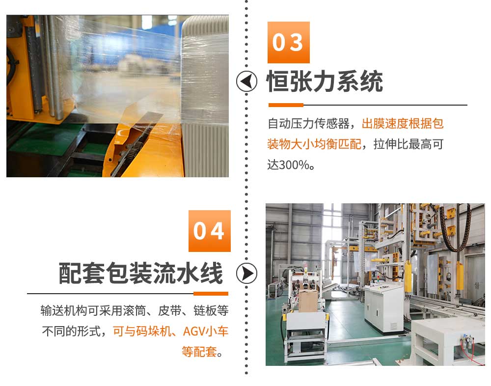 可根據不同的產品和現場的實際需求,定制不同的包裝系統,自動完成貨物的感測、包裝、輸送等全過程,
