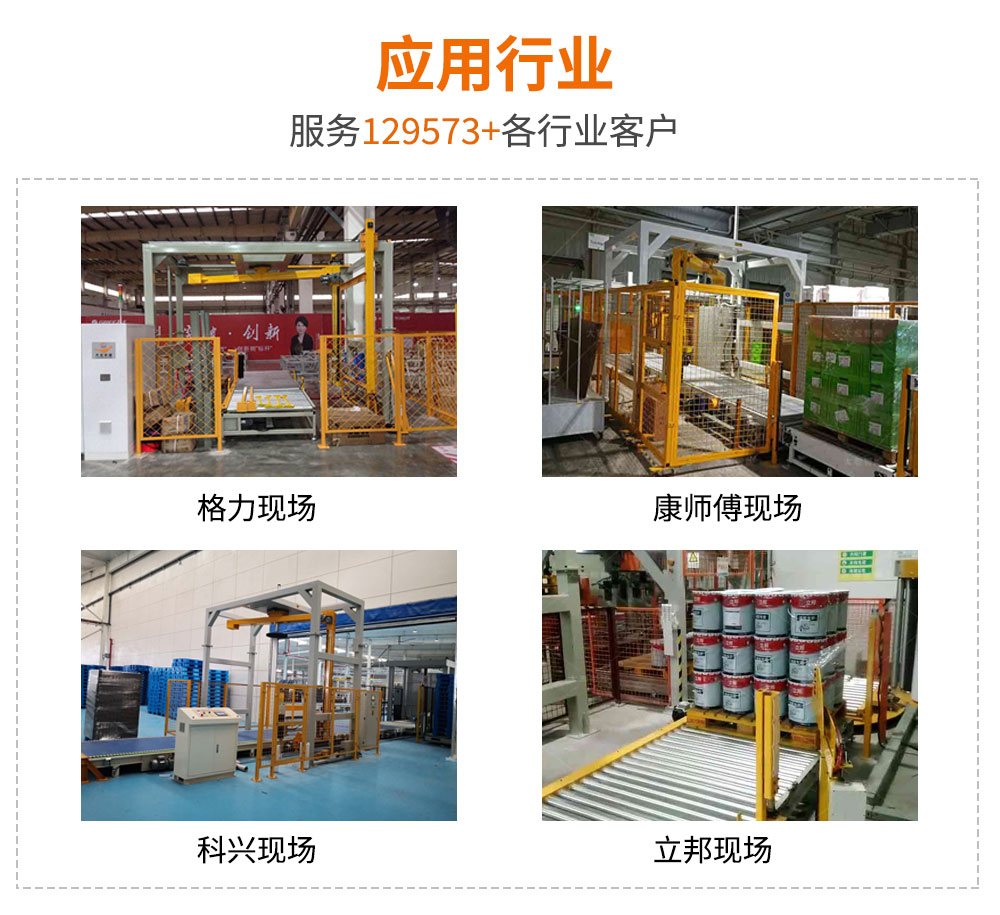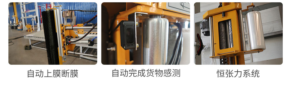 可實現(xiàn)流水線包裝,貨物不動,設(shè)備上的纏繞膜圍繞著貨特運轉(zhuǎn)